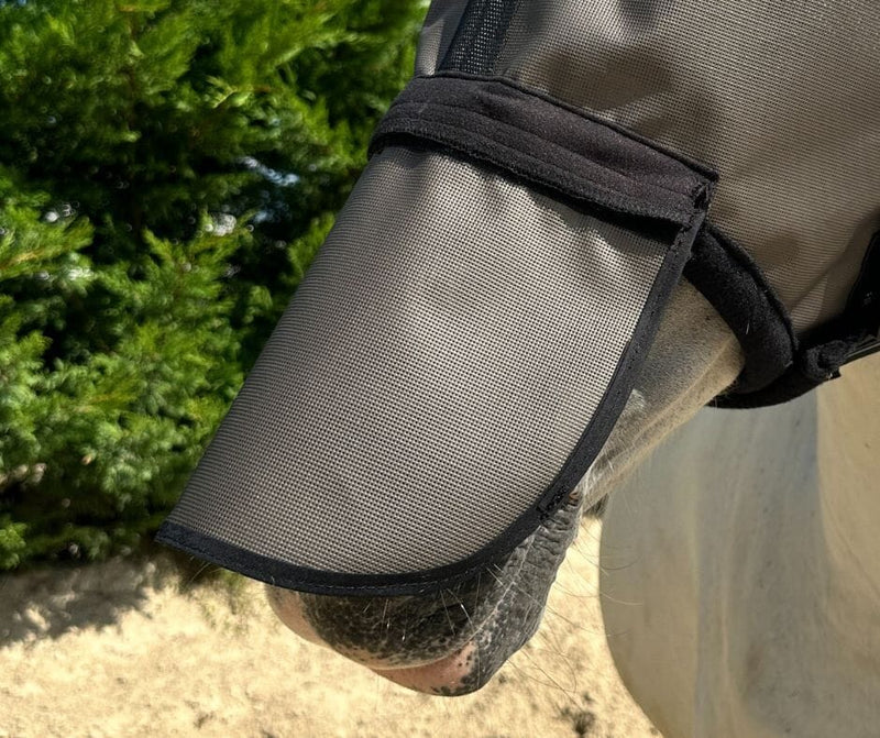Conçu dans une toile filtrant 90 % des UV, il permet de protéger le chanfrein et les naseaux, particulièrement exposés chez les chevaux clairs ou photosensibles. Idéal en cas d’usure ou pour disposer d’un élément de rechange, tout en conservant l’efficacité protectrice du masque. Compatible uniquement avec le modèle Helios.
