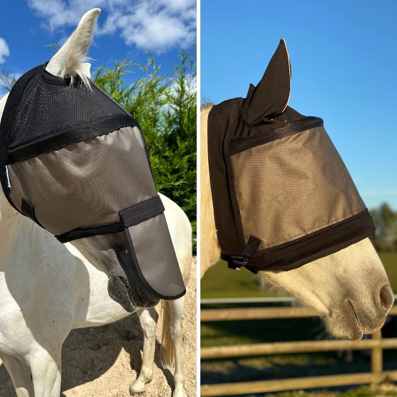 Les chevaux ne sont pas faits pour porter des masques ! Assurez-vous à minima une fois par jour que le masque n'a pas bougé et que votre cheval le supporte bien. Nous apportons le plus grand soin à la confection de nos produits et au choix des matériaux mais chaque cheval est différent et il vous appartient de vérifier que l'équipement choisi (modèle+taille) correspond bien à la protection nécessaire aux yeux de votre cheval.